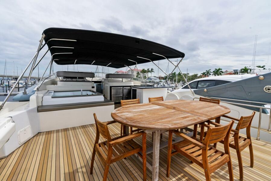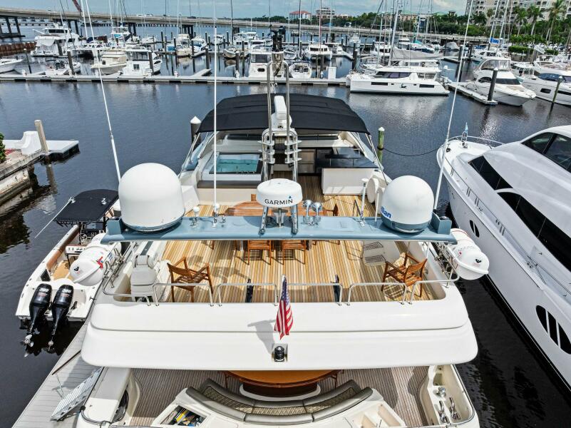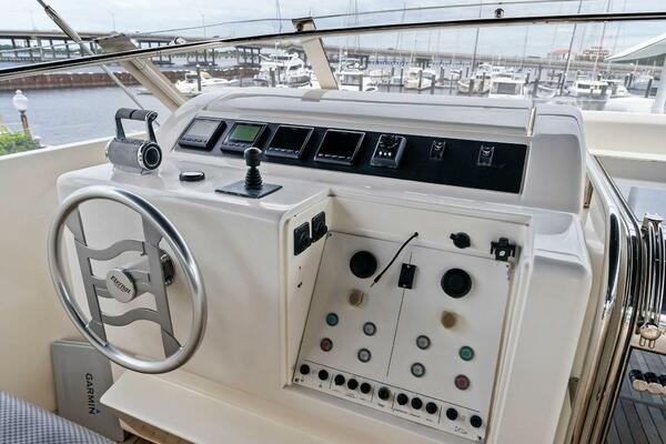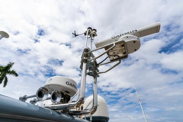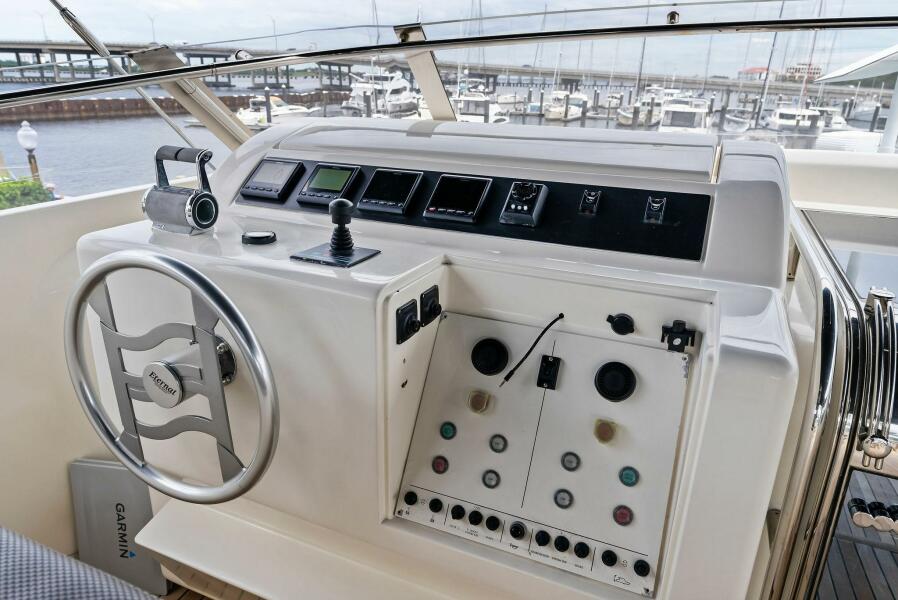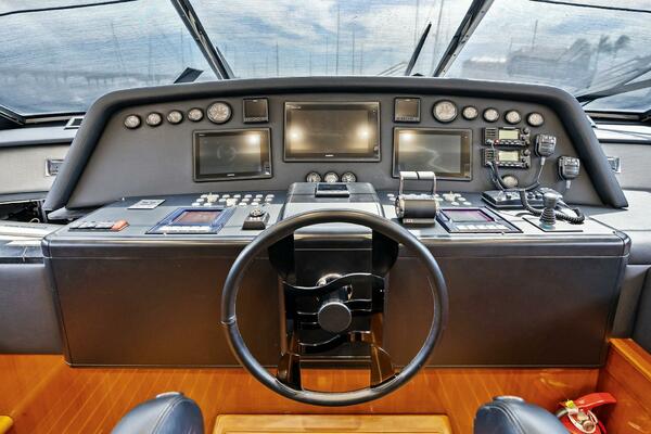 - Flybridge Control Station with Retractable Panel with 2 Garmin GPS Map 7612, Engine Analog Gauges, Garmin Autopilot & Depth Sounder, 2 Standard Horizon RAM 3 VHF Handhelds, Searchlight Control, ABT Trac Bow-Thruster Control, MTU Throttle & Controls, Steering Analogue Gauge, Double USB Outlet, Ferretti Steering Wheel