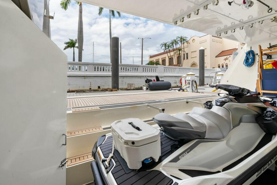 - Large Garage Suitable as a Lounge, Storage for Toys or Storage for Tender with Teak Chairs, Chocks, Railings and Hangers