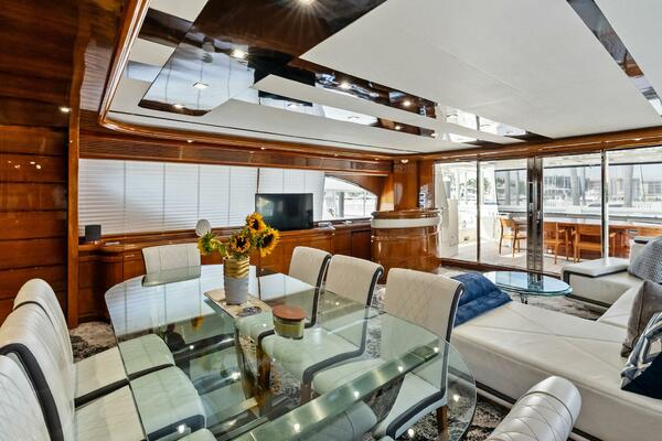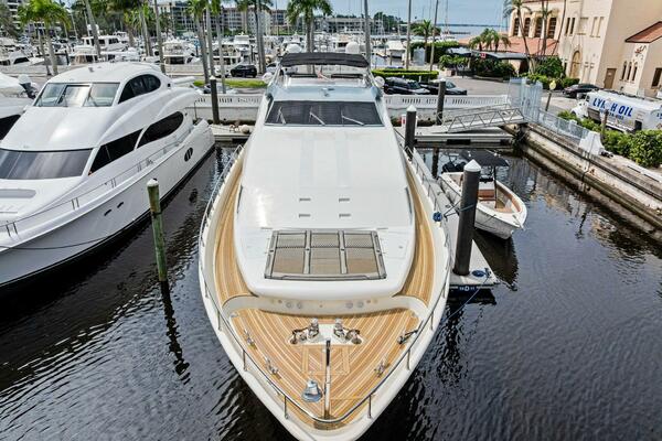 2004 94 Ferretti Yachts Motor Yacht Noah's has undergone an extensive refit in 2023-24 and has many desirable updates and upgrades. Noah's shows in pristine condition thanks to a new paint job and new interiors including cushions, carpets, headliners, sofas, lights and chairs. Noah's has new synthetic teak decks on the flybridge, side decks and bow area. Noah's electronics were all replaced in 2022. She has new underwater lights and power cords. She also has a new jacuzzi and flybridge galley. She has extensive service records and has a new generator, new bottom paint, prop speed, cutlass bearings and props have been balanced and shafts aligned. If you are looking for a well-maintained, updated and elegant yacht, come see Noah's today!