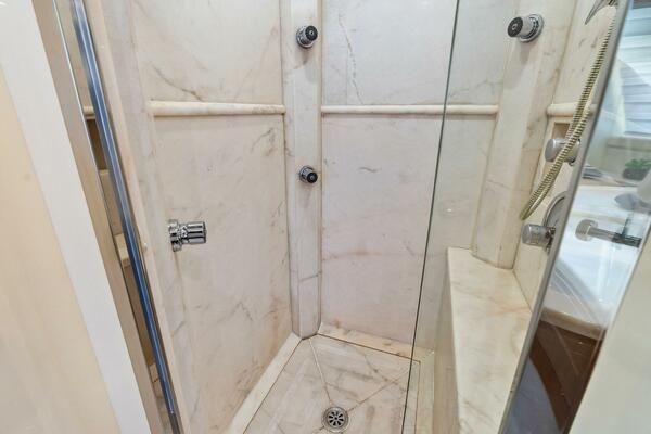 - En-Suite Head with Travertine Marble Shower, Marble Sinks & Sole