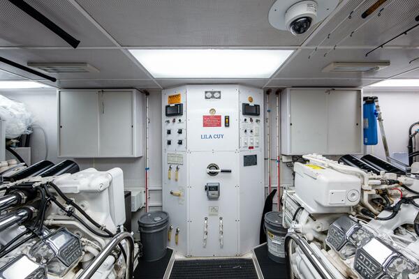 In 2025, “LILA CUY” underwent a yard period at Safe Harbor Rybovich, which included a bottom job, davit rebuild & paint, stabilizer servicing, windlass rebuild, and bow thruster overhaul. The master cabin received new whisper wall paneling, and the owner’s head was upgraded with new countertops and a wash basin. Additionally, a new hot water heater and exhaust risers were installed fall of 2025.