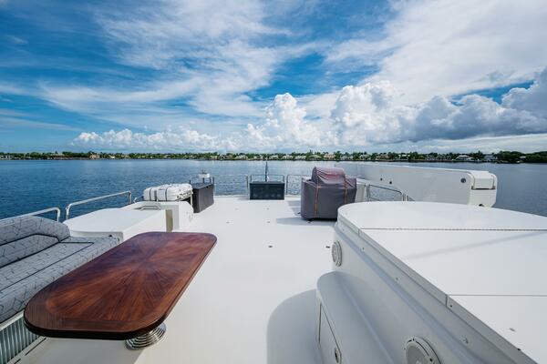In 2021, the yacht received further enhancements, including new teak on the swim platform, updated galley flooring, refreshed aft bar stone, and new crew headliners, ensuring continued elegance and functionality.