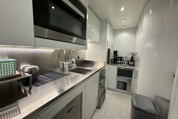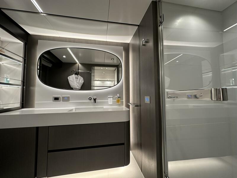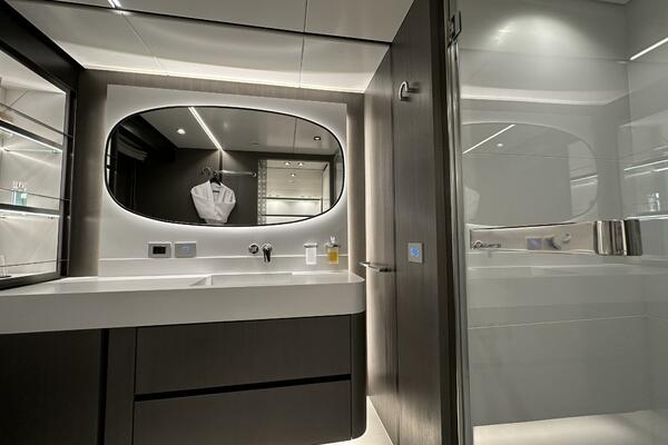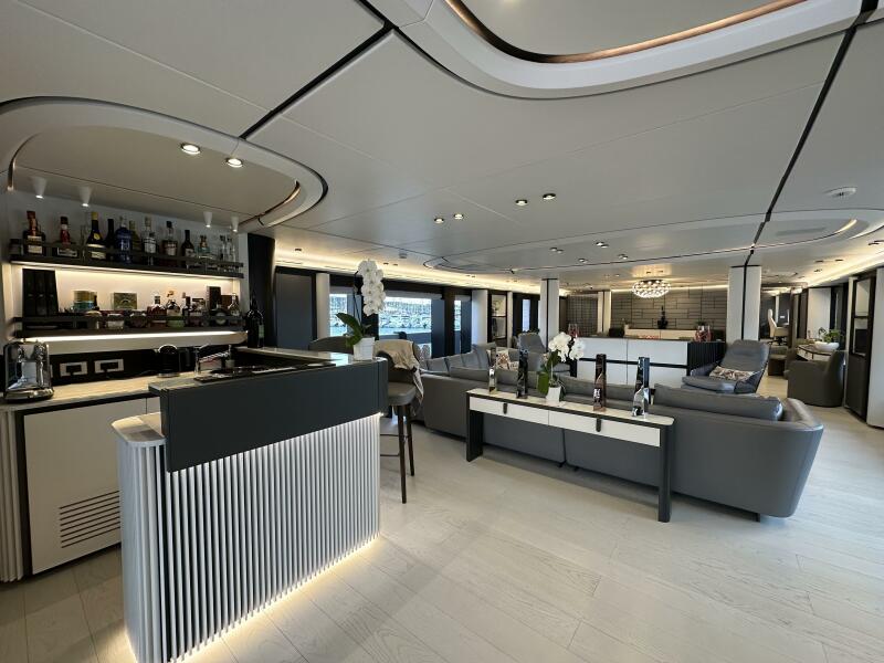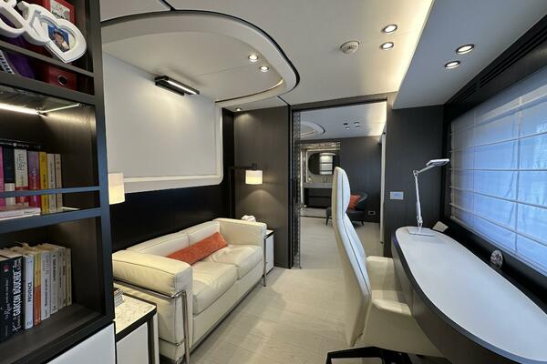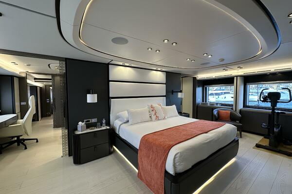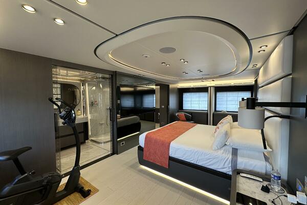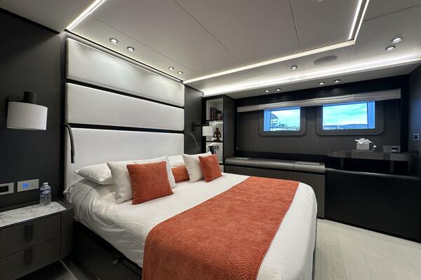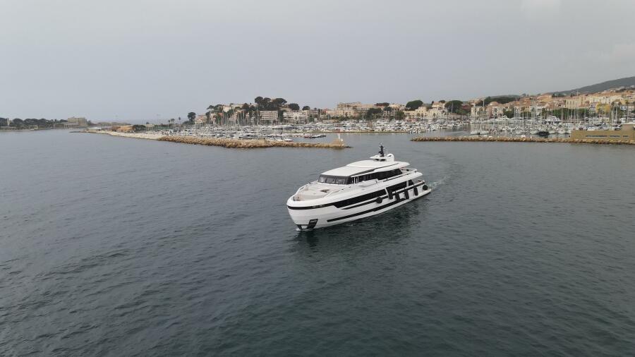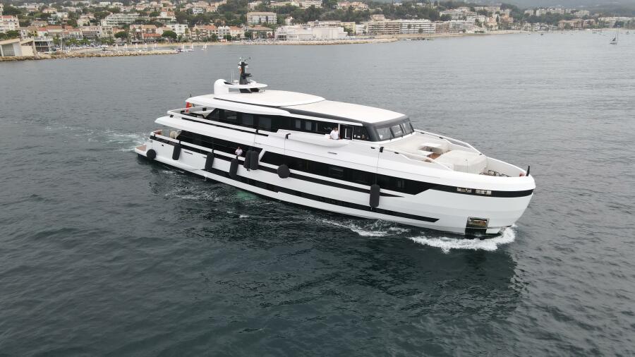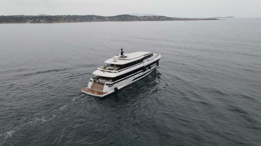 • Aluminum superyacht with a modern explorer design and impressive volumes • Private use and VAT paid • Infinity Jacuzzi on the foredeck • 5 cabins for 10 guests, including a master suite on the main deck • Fin stabilizers both underway and at zero speed