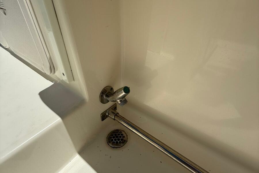 2015 Cobia 296 Center Console boat interior detail with drain and faucet.